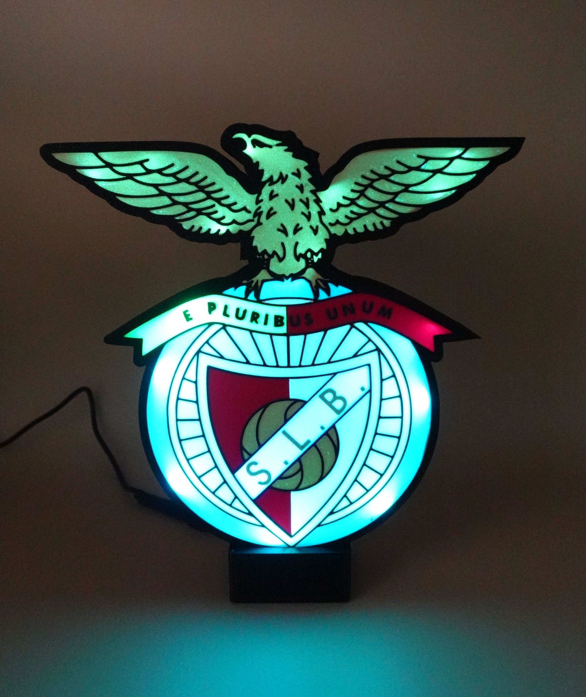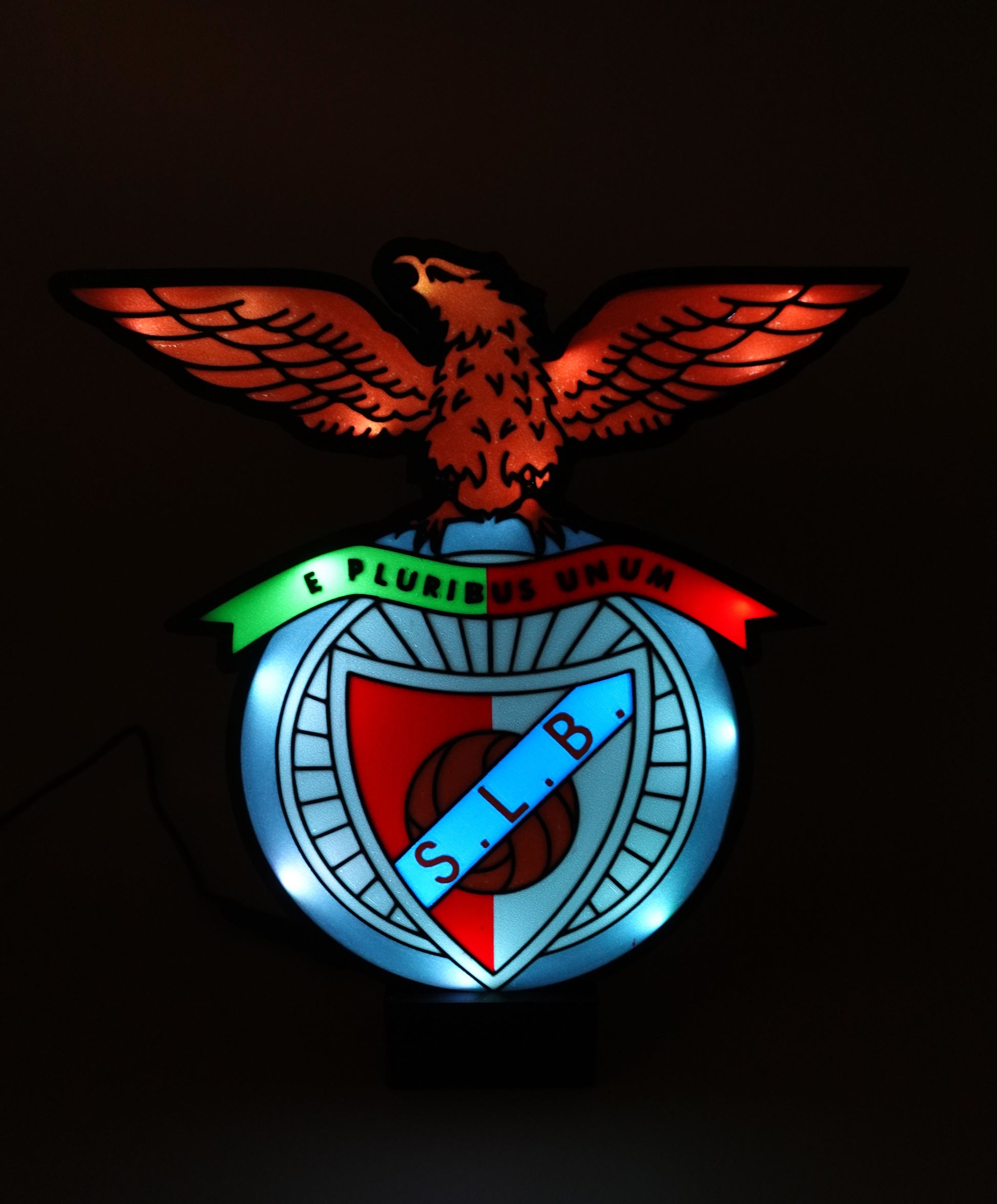 Lampe LED avec télécommande aux couleurs du club Portugais SLB. Cette accessoire lumineux allie fonctionnalité et passion pour le football, offrant une ambiance unique à votre espace.